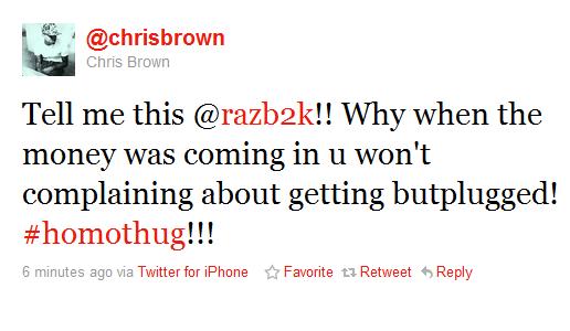 Chris Brown finally issued a response to Raz B tweets. Earlier today, while professing his love for Rihanna, Raz B accused Chris of being disrespectful toward women. However, Chris Brown did not ignore the former B2K member’s comments. See what he had to say below: